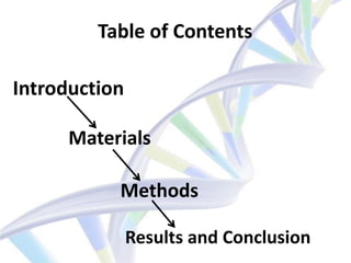 This document summarizes a CNIT final presentation about annotating the genome of the RiverMonster bacteriophage. It includes an introduction to bioinformatics and the goals of the CNIT course. It describes the bacteriophage and annotation tools used, including DNA Master, Phamerator, Glimmer, and GeneMark. It outlines the process of organizing the genome annotation between group members and analyzing each gene. It concludes with the accomplishments of completing the genome annotation and discusses the significance and potential future work.