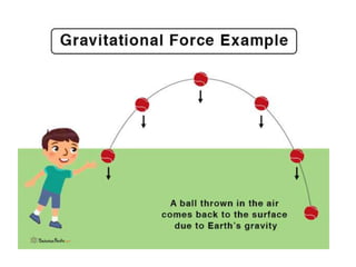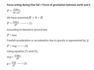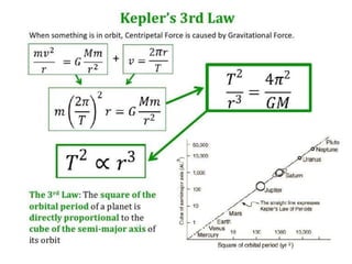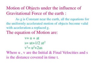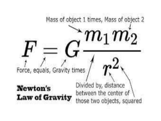 2. Key points covered include that the gravitational force between two objects is directly proportional to the product of their masses and inversely proportional to the square of the distance between them.