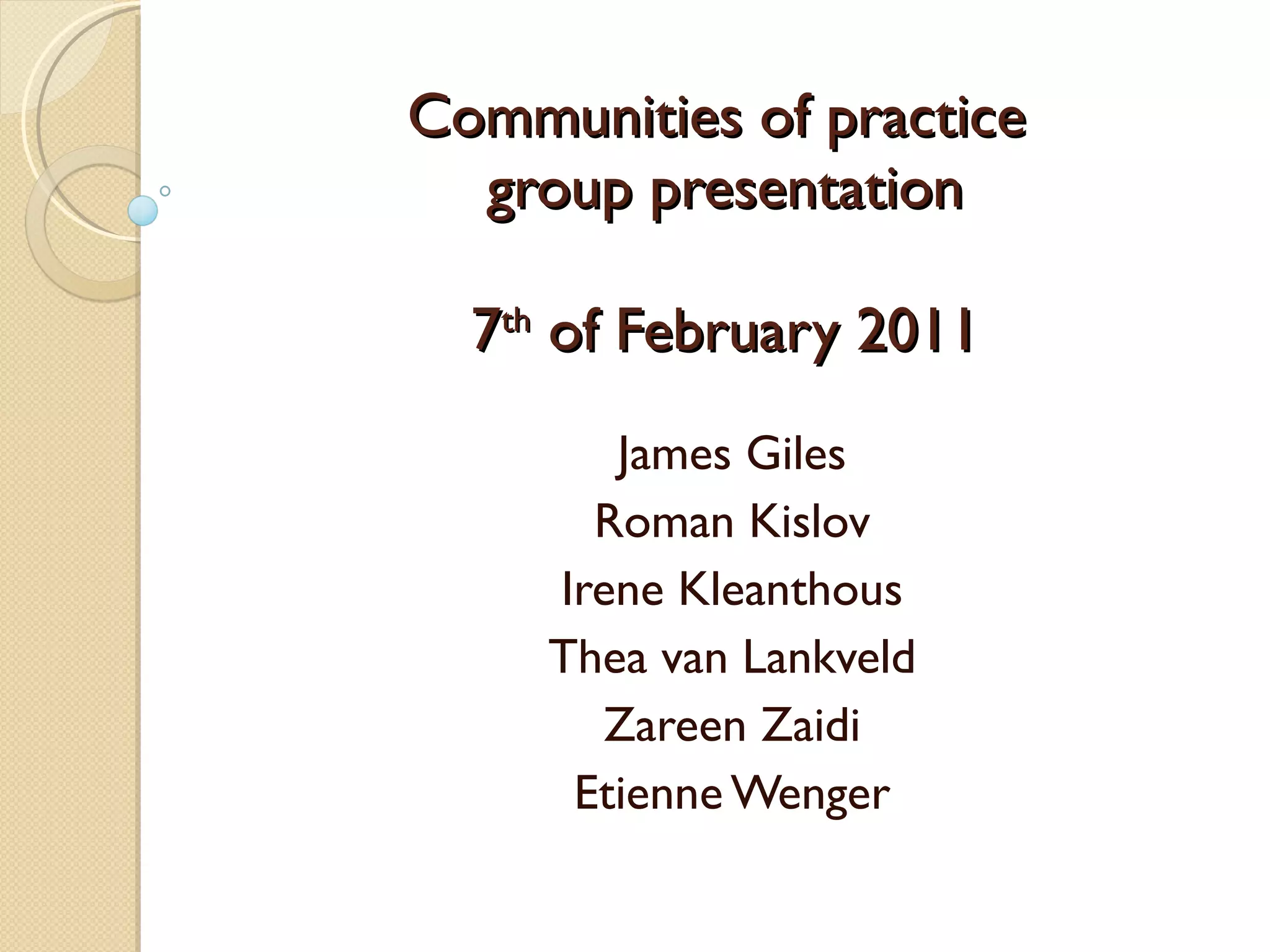 This document provides an overview of communities of practice theory, including its antecedents, early and middle stages of development, applications, and critiques. It traces the theory from its origins in situated learning to its focus on identity development through participation in a community. Key aspects include legitimate peripheral participation, modes of identification within a community, and using the framework to analyze professional learning and healthcare collaborations. Critiques address issues like operationalizing identity and overlooking power dynamics.