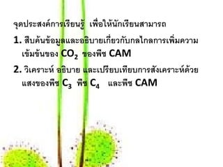 กระบวนการตรึงคาร์บอกไดออกไซด์พองพืช c3 c4 cam PDF