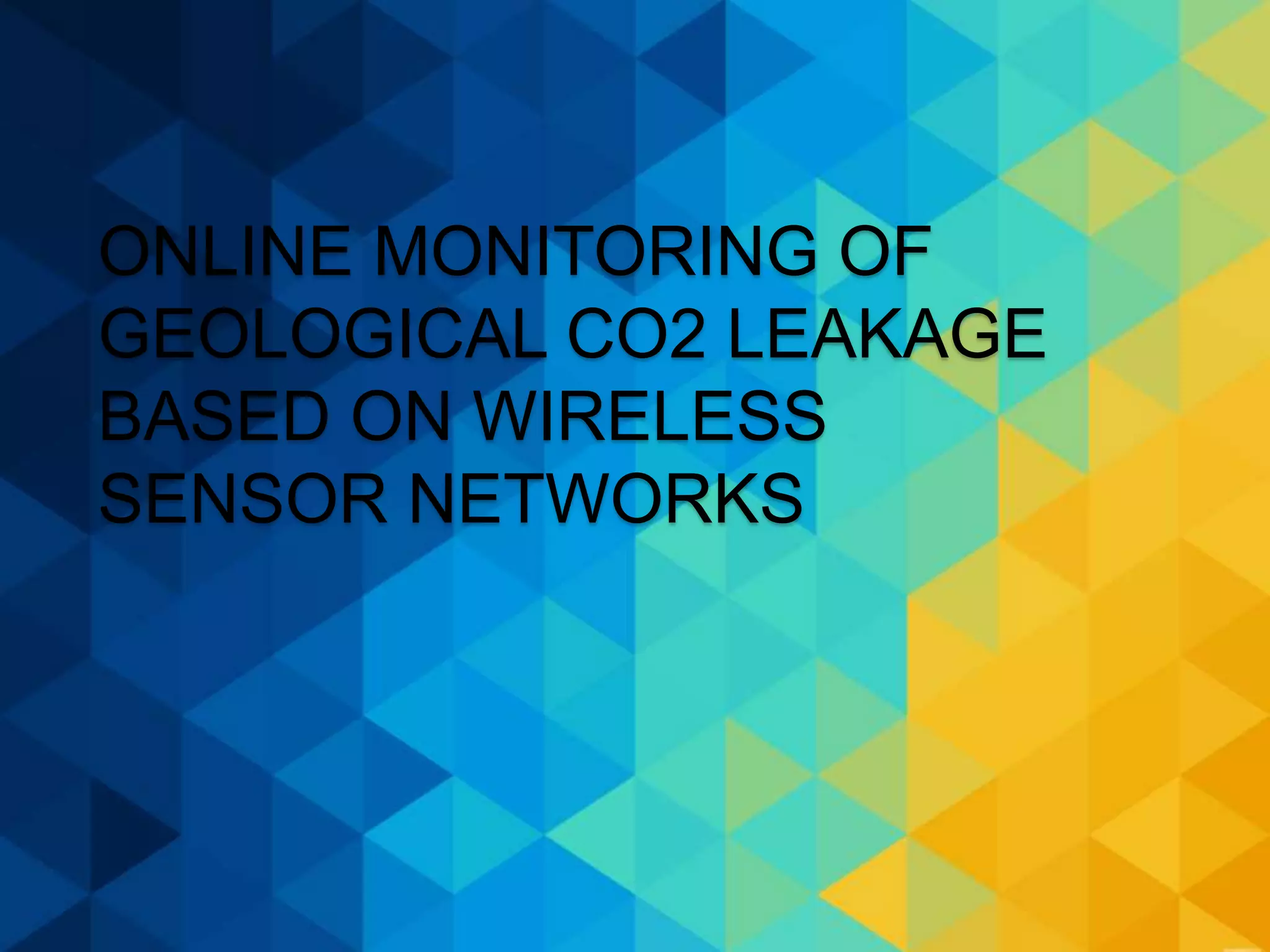 The document discusses the environmental impact of coal combustion, highlighting the urgent need for accurate carbon dioxide emission estimates to combat global warming. It introduces a remote online monitoring system for CO2 concentrations using wireless sensor networks, aimed at detecting gas leakage for CO2 capture and storage. This system integrates various technological components such as sensors, GPS, and wireless transmission modules.