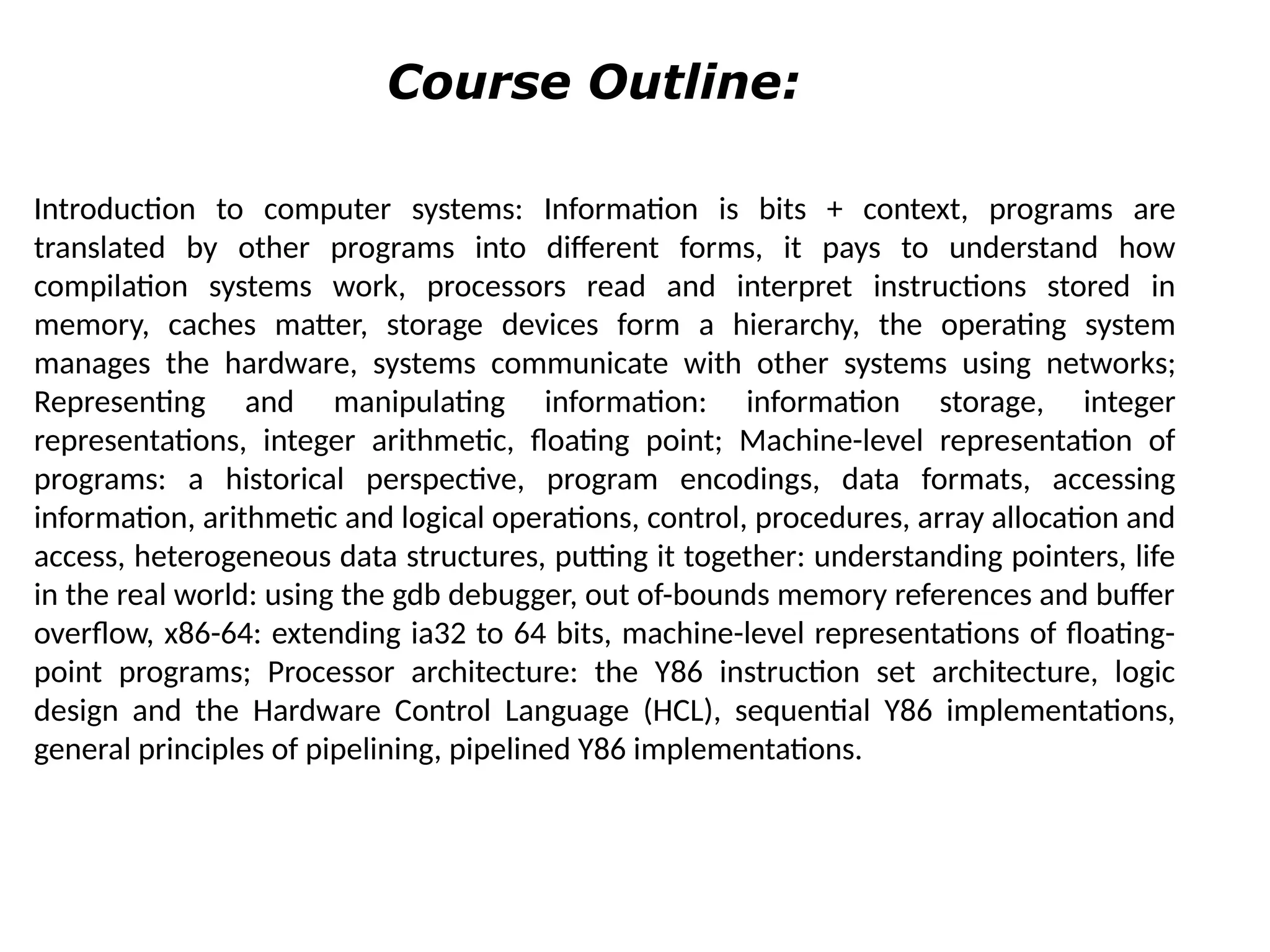 point programs; Processor architecture: the Y86 instruction set architecture, logic