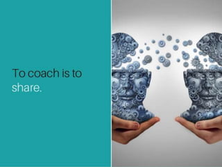 Coaching involves guiding someone towards their goals through mutual sharing and creating agreed upon outcomes. It is not about correcting behavior or being the expert, but contributing to development through a two-way partnership. Effective coaching requires actively listening, asking questions, advocating opinions, giving and receiving feedback, and building agreement. Coaches must customize their style based on factors like gender, sport type, and aspirations. Directive, supportive, autocratic, democratic, and humanistic approaches each have advantages and disadvantages depending on the situation. Building trust and empowering self-growth are keys to managing the dual role of evaluator and coach. Exemplary coaching philosophies focus on knowledge sharing, building character, fostering growth, and cultivating high self-