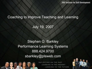 The document discusses coaching to improve teaching and learning. It recommends that all educators receive weekly observations and feedback, and that the most skilled teachers receive the most coaching. It also discusses peer coaching, Gordon's skill development ladder for teachers, and the importance of open versus closed environments for learning.