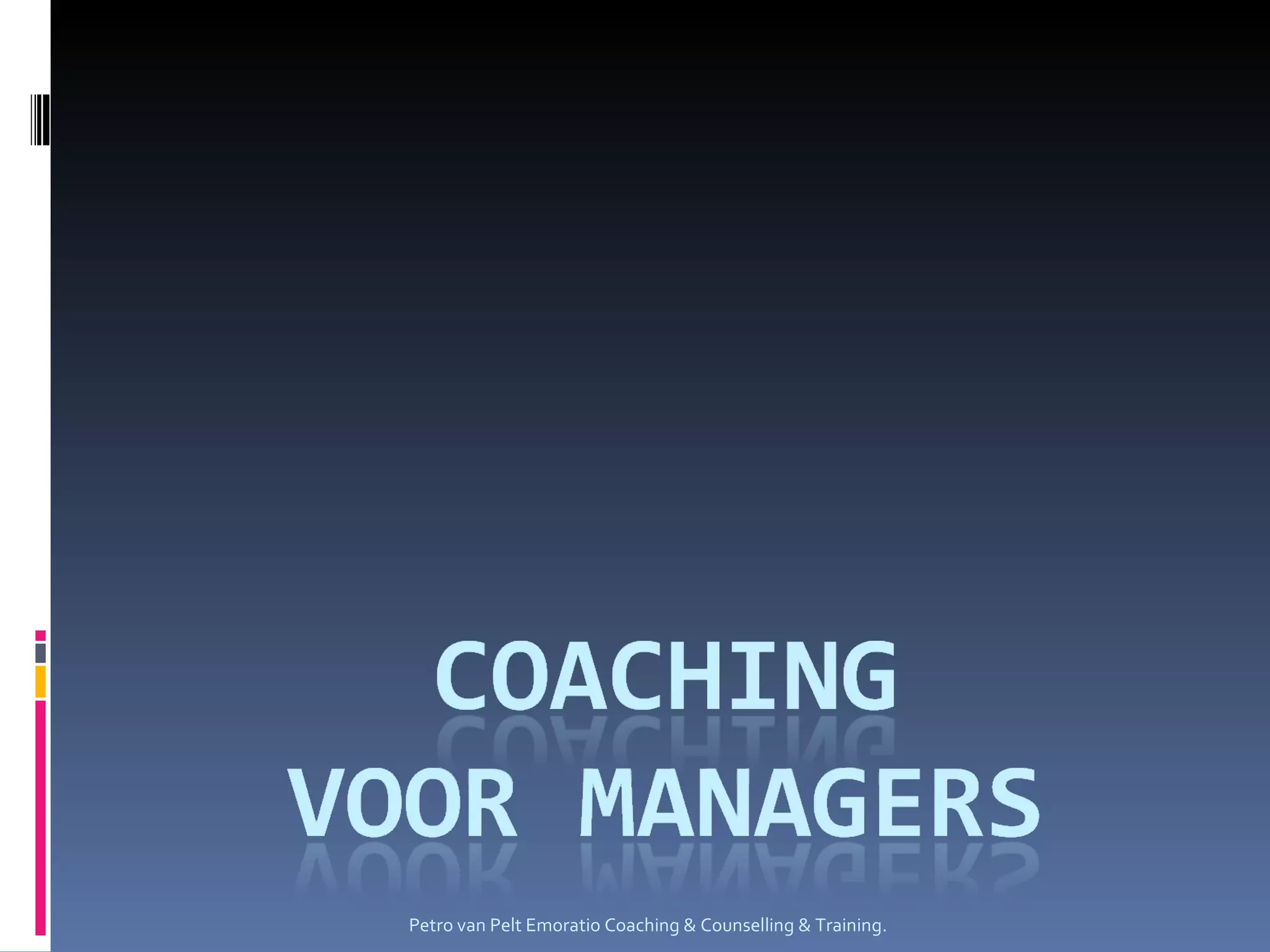 Coachen op conflictenBlijf onpartijdig anders kun je het coachen wel vergeten! De manager richt zich op: Wat speelt er? Vaststellen waarom het draait. Brainstormen over mogelijke oplossingen. Onderhandelen over het resultaat. Afronden. Petro van Pelt Emoratio Coaching & Counselling & Training.