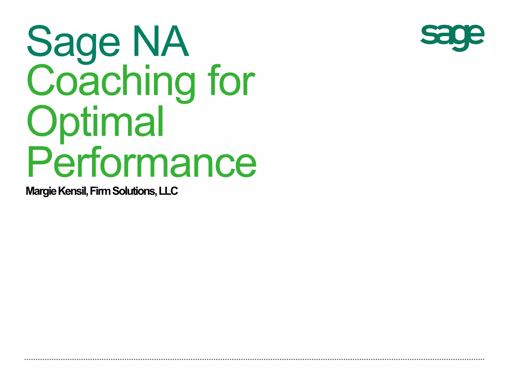 Sage NA is providing coaching training to reinforce a coaching model for driving organizational change. The training aims to heighten colleague engagement and foster greater motivation through coaching conversations. The agenda covers the case for change at Sage, what coaching is, the performance pyramid for setting goals, and the coaching model. The model involves creating dialogue through questions, balancing feedback, and planning for action. Managers are encouraged to use coaching to provide clarity on goals, build connections, and attain commitment from colleagues.