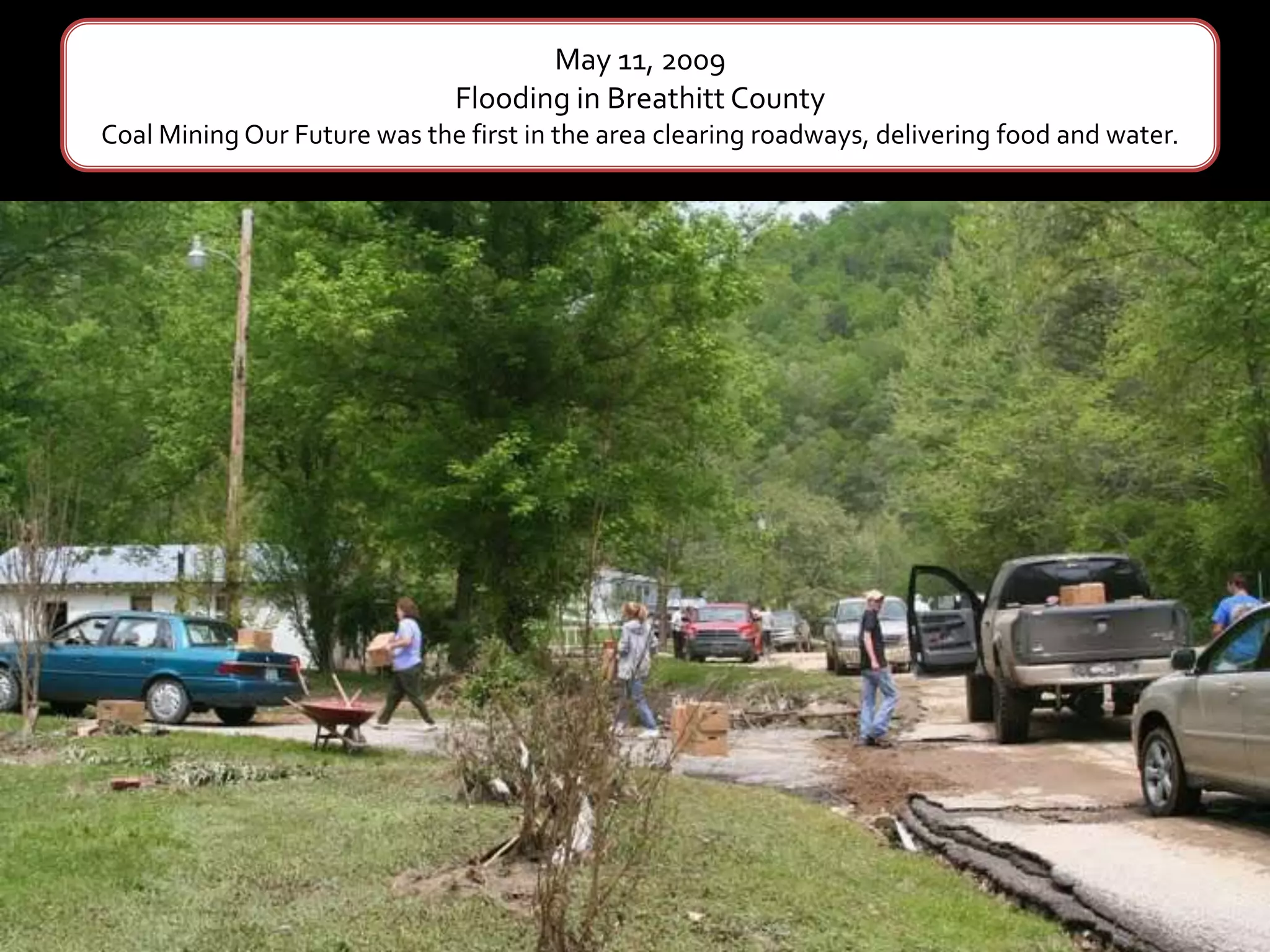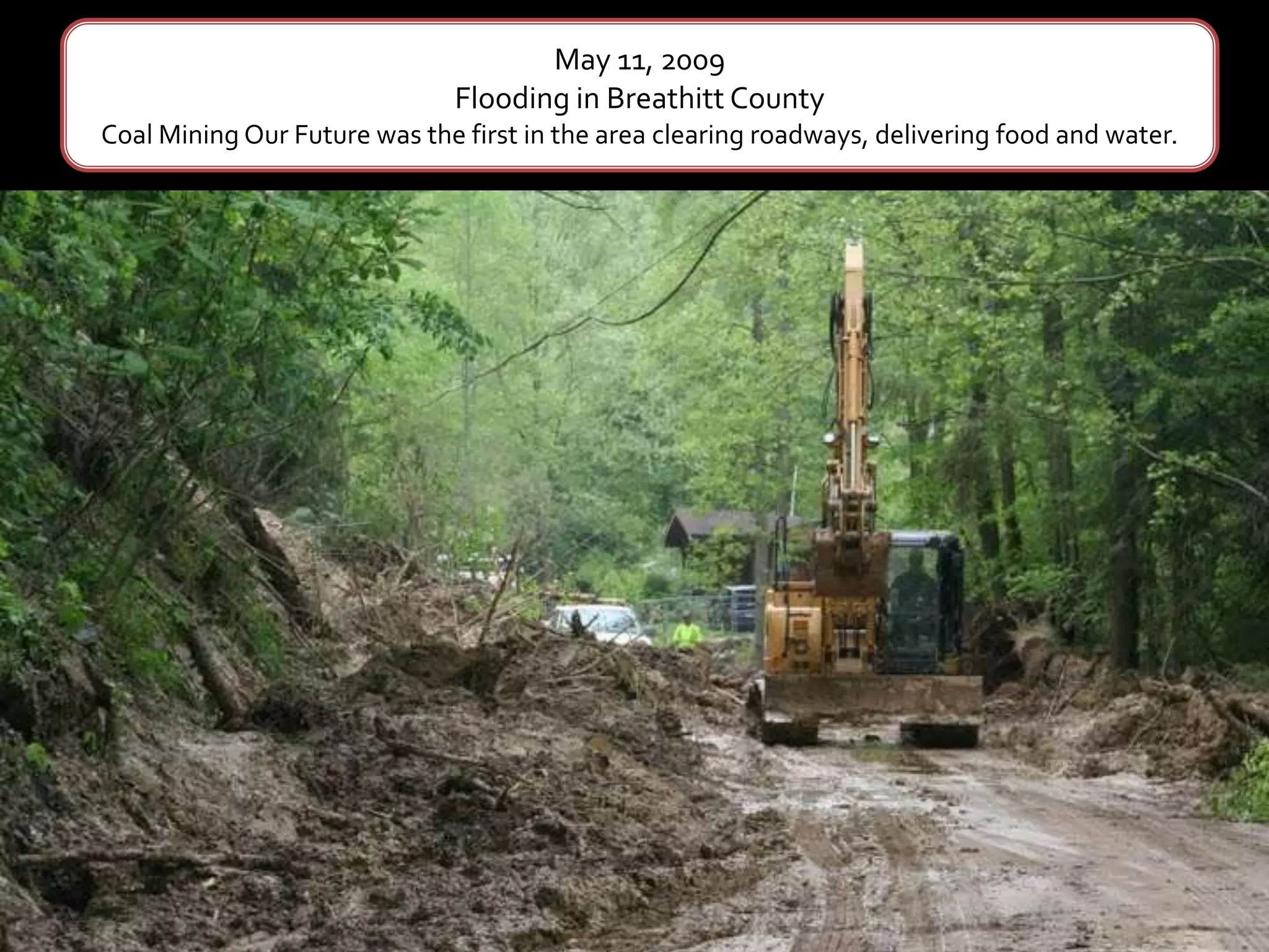 The document outlines the goals and activities of an organization called "Coal Mining Our Future" which include: