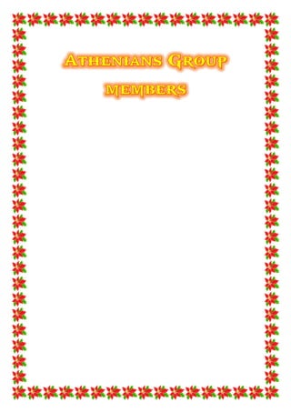 This document describes a multidisciplinary school project done by the Athenians group on the topic of coal mining. The project included sub-projects in six subjects - English, Tamil, Math, Science, Social Science, and Hindi. Each subject's project focused on a different aspect of coal mining such as illustrations of Indian coal mines, a field visit report in Tamil, statistical graphs and tables on coal reserves, the environmental impacts of mining, the history of coal, and an essay on coal. The document expresses thanks to teachers, the school principal, and an NLC employee who helped guide the field trip portion of the project.