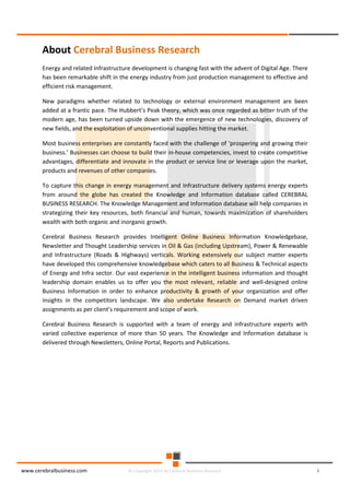 The document discusses the rapid evolution of the energy sector, emphasizing the shift from production management to risk management in the digital age. It introduces the Cerebral Business Research database, which supports businesses by providing insights on energy and infrastructure to maximize shareholder wealth. The text covers various detailed topics, including coal resources, global trends, production forecasts, and challenges faced by the industry.