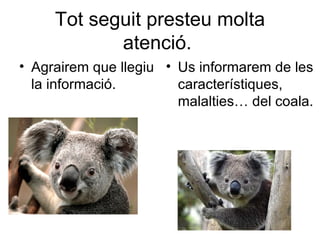 Coala: És unmamífer marsupial, que habita en els arbres del