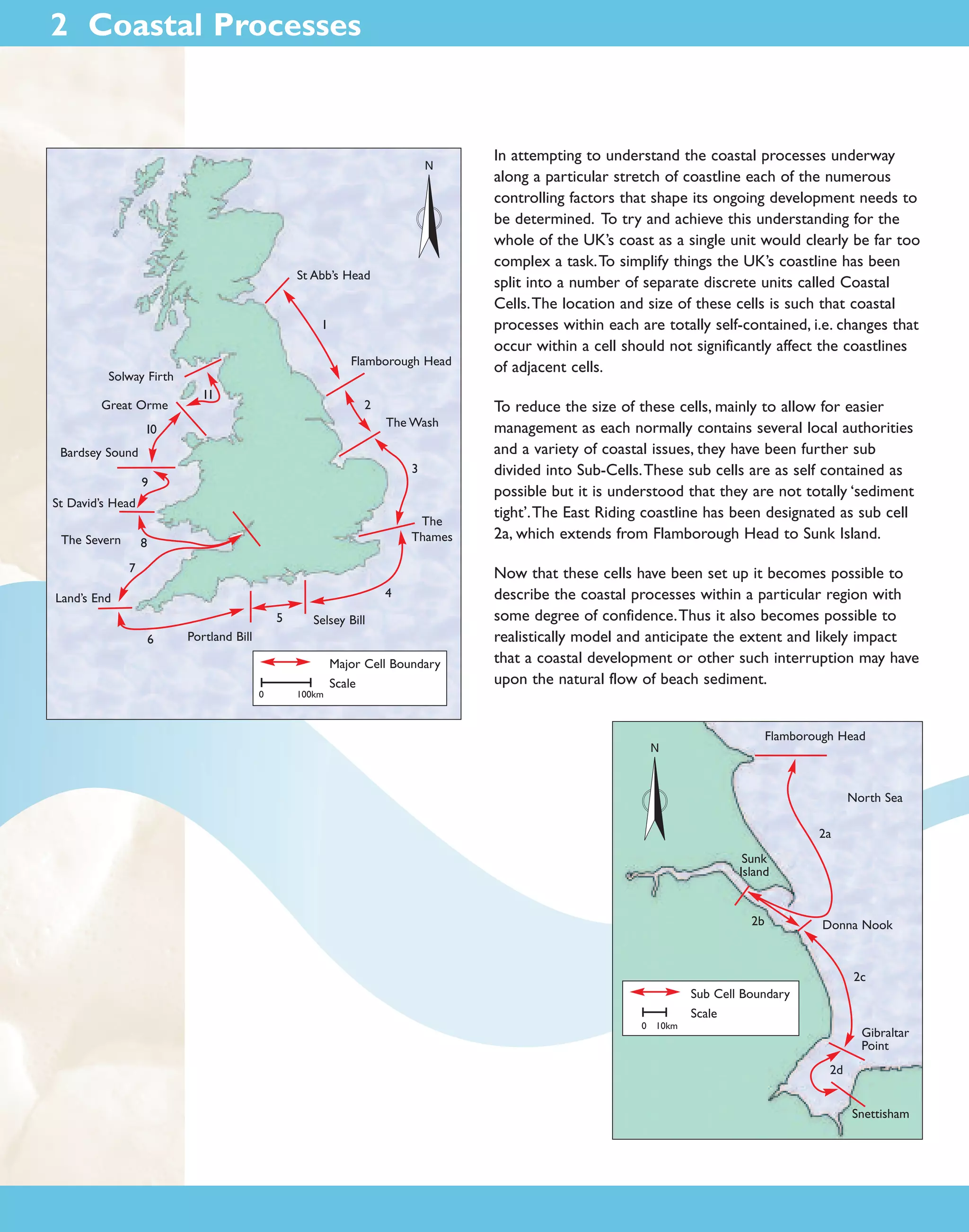 1) The UK coastline has been divided into coastal cells and sub-cells to simplify understanding coastal processes. The East Riding coastline is designated as sub-cell 2a.
