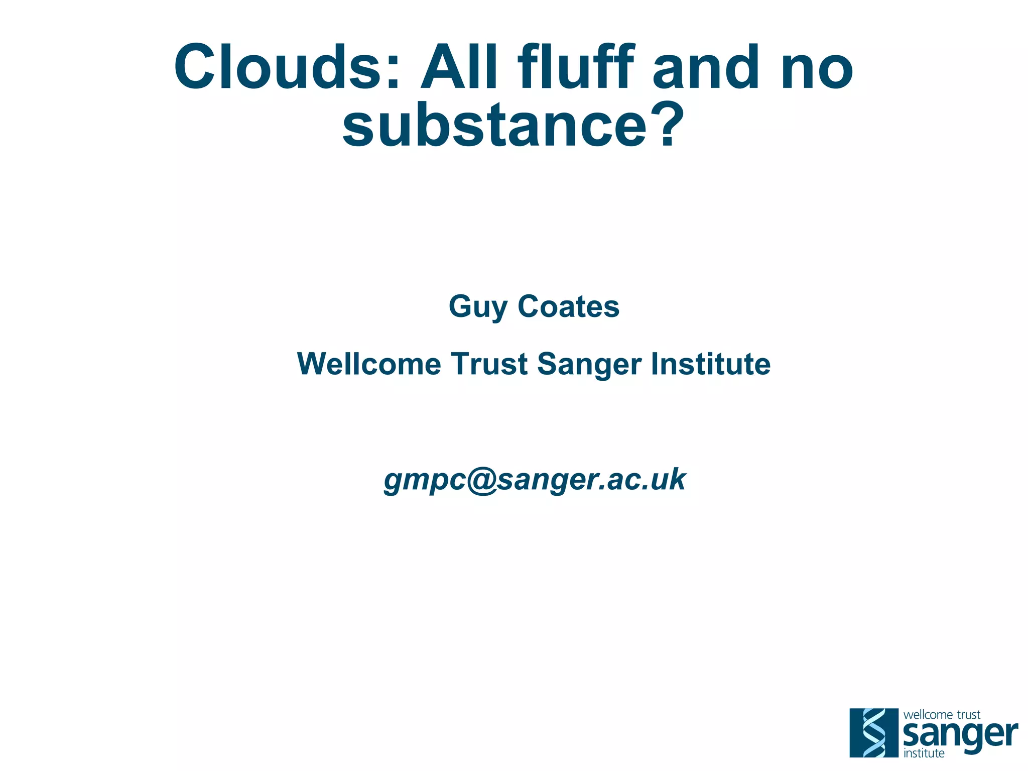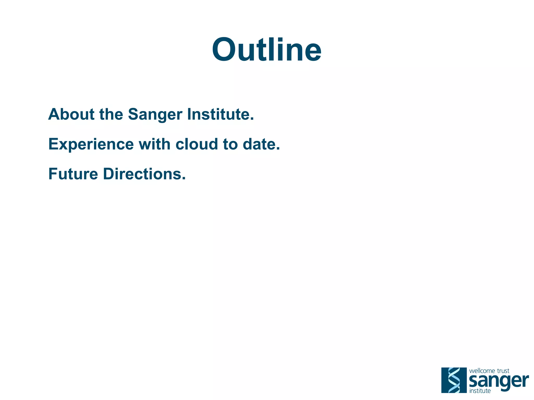 The Sanger Institute generates large amounts of genomic data and requires significant compute resources to analyze it. It has experimented with running its analysis pipelines in the cloud to expand capacity and markets. However, moving large datasets into the cloud and ensuring fast access to the data within cloud compute resources has proved challenging. While individual components like web services have worked well, the high performance computing workloads that rely on large-scale data access and processing have not scaled effectively due to data transfer bottlenecks and lack of high-performance filesystems in the cloud.