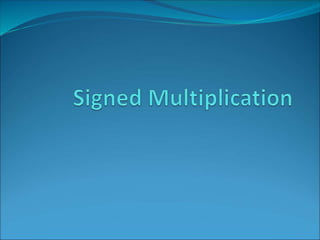 This document discusses addition and multiplication of signed and unsigned numbers. It describes how to perform n-bit addition and subtraction using a ripple carry adder by cascading full adders. It also discusses faster addition methods like carry lookahead adders and blocked carry lookahead adders. For multiplication, it explains how to implement unsigned multiplication using a combinational array multiplier or a sequential multiplier and discusses how to handle signed number multiplication.