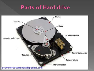 This document provides information about computers and their components. It discusses that computers are electronic devices that can store, process, and manipulate data. It then outlines the three main components of a computer: hardware, software, and peopleware. Under hardware, it describes the physical parts of a computer like the system unit, monitors, keyboards, and other input/output devices. It explains software types like system software and application software. It also provides details on computer components, peripherals, and how to troubleshoot common issues.