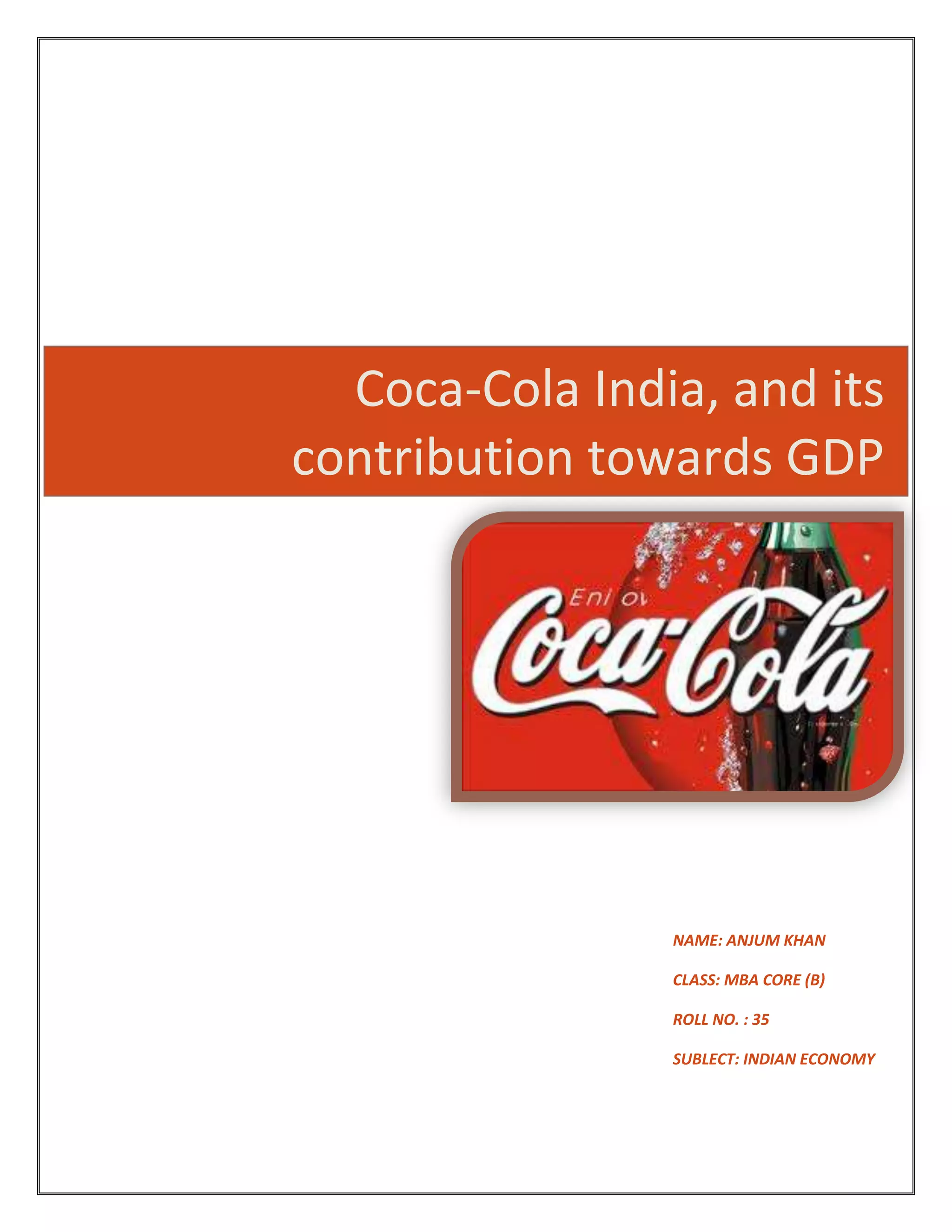 Coca-Cola entered India in 1993 and has since grown its operations rapidly through bottling partnerships and a large distribution network. It has invested $2 billion so far and plans to invest another $5 billion by 2020. Coca-Cola contributes significantly to India's GDP through direct employment, procurement from suppliers, and catalysing growth in related industries. However, it also faces threats from health consciousness, regulations in different markets, and competition from PepsiCo.