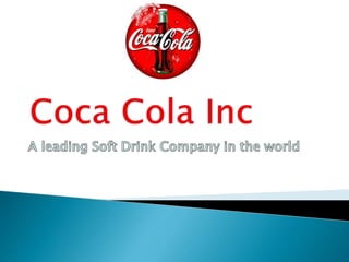 Coca Cola is the world's largest beverage company that was started in 1886 in Atlanta, Georgia. It has maintained its position as the top soft drink brand through strategic decisions around branding, marketing, and product distribution. While Coca Cola saw a 2% decrease in total turnover and a 17% decrease in net income in 2014 due to some negative impressions, it remains one of the most recognized brands globally with a portfolio of over 20 drink brands.