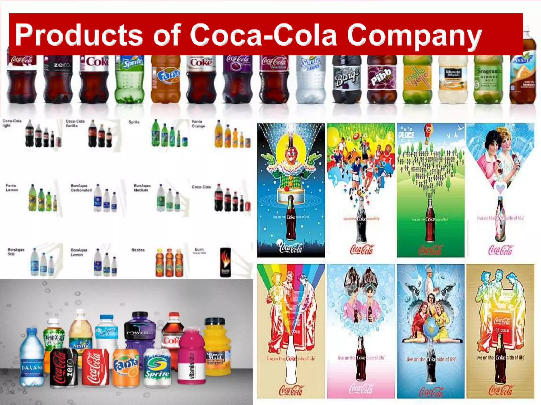 The Coca-Cola Company is the largest beverage corporation, manufacturing over 500 brands and serving 1.7 billion servings daily across 200 countries. It focuses on aggressive marketing, extensive acquisitions, and expansive product offerings, while also emphasizing corporate social responsibility initiatives. Despite being a market leader, it faces competition, particularly from Pepsi, and must navigate challenges related to public perception and slow decision-making processes.