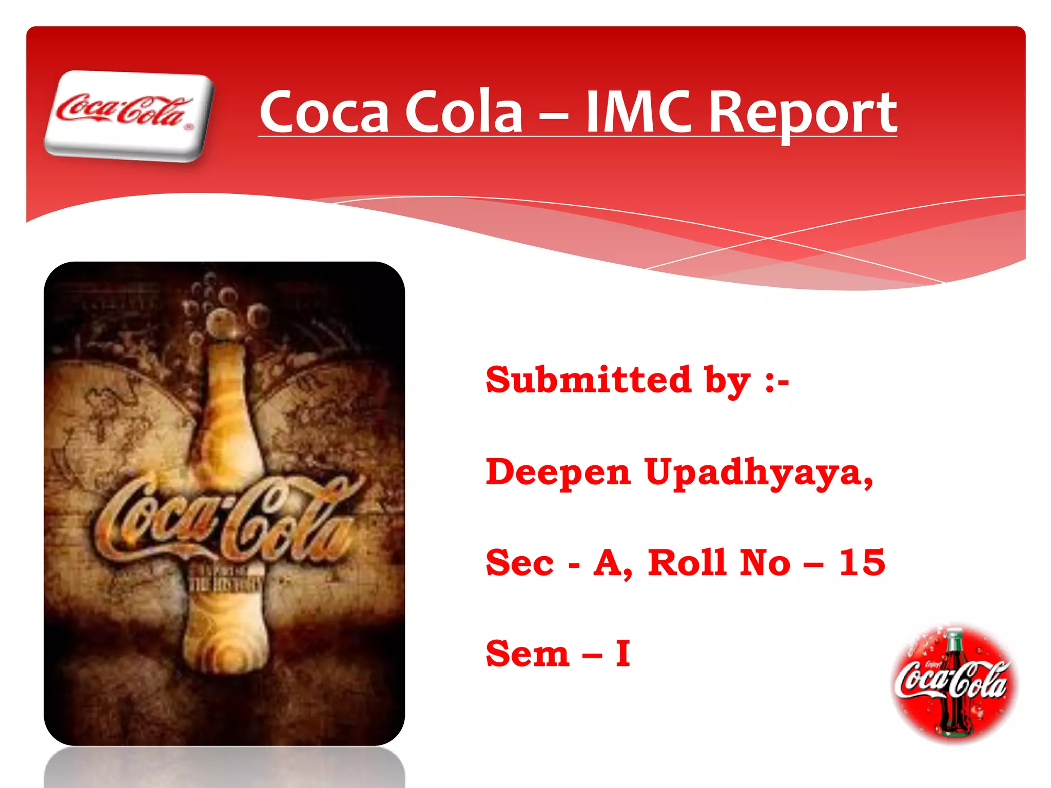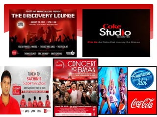 The Coca-Cola Company traces its origins to 1886 when an Atlanta pharmacist began selling Coca-Cola syrup. It is now one of the largest beverage companies in the world with over 500 brands sold in over 200 countries. Coca-Cola's products include carbonated drinks like Coke, Sprite and Fanta, as well as juices, waters and energy drinks. The company has a global franchise model where it produces syrup concentrate that is sold to authorized bottlers. Coca-Cola has a wide target market and uses extensive sponsorship, promotions and advertisements to market its brands worldwide.
