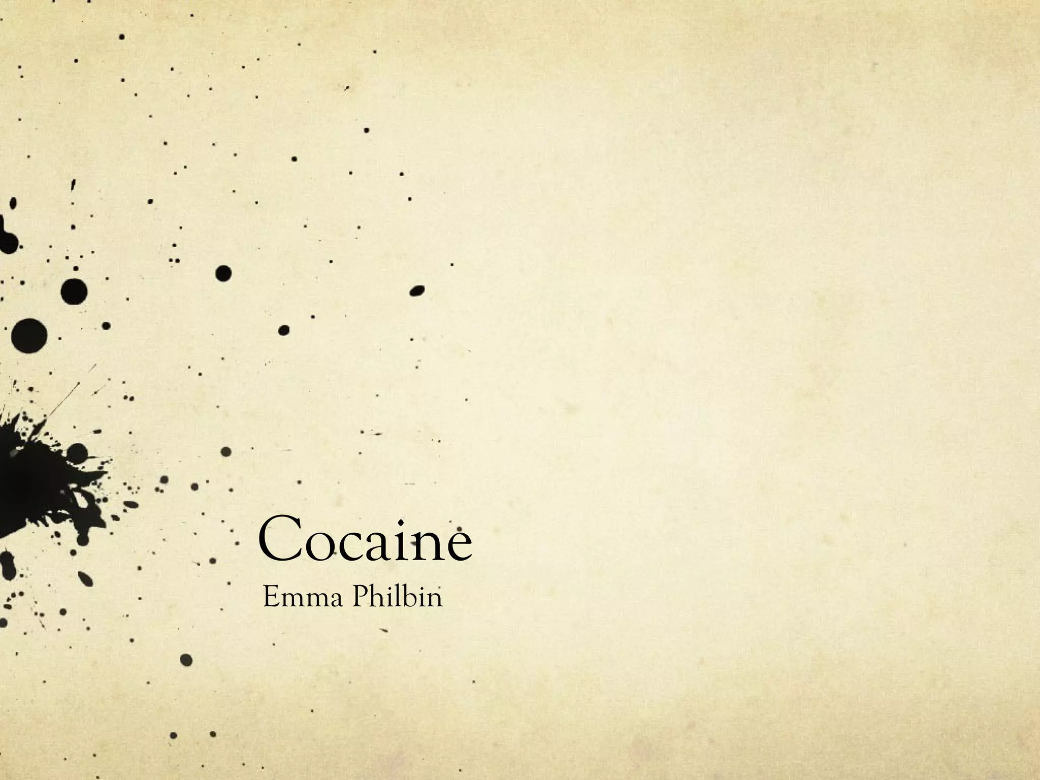 Cocaine is derived from coca plant leaves and was originally used by native South Americans to enhance performance and cope with thin air. It was later extracted into a white powder and marketed in the late 1800s for medical uses like treating depression. Cocaine was a primary ingredient in Coca-Cola until 1914 when it was regulated and banned. Today, cocaine is a white powder that is snorted, smoked, or injected and is highly addictive with side effects like insomnia, anxiety, and nose bleeds. It remains one of the most commonly used illicit drugs in America.