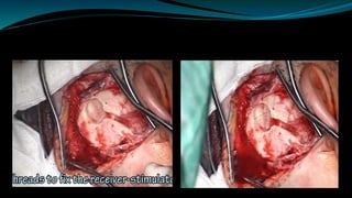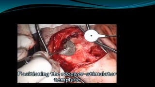 - The surgical procedure to implant the device involves making an incision to access the inner ear and inserting an electrode array to stimulate the auditory nerve. Extensive testing and rehabilitation is required post