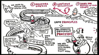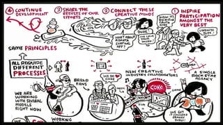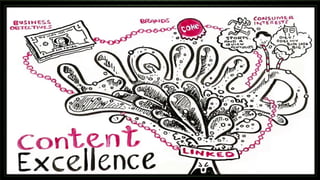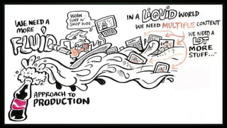 This document discusses an approach to "liquid and linked content development" with 10 sections. It outlines the case for changing traditional storytelling to a more evolutionary approach using five key capabilities. It also details how to bake live engagement into plans, develop liquid content through iterative production, and apply research and dollar multipliers. The overall approach aims to tell stories in a more adaptable way through liquid content.