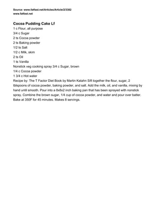 This recipe is for a cocoa pudding cake that combines a cake batter with a chocolate pudding layer. The batter is poured into a baking pan and then a mixture of brown sugar, cocoa powder and water is poured over the top. It bakes for 45 minutes, with the pudding sinking into the cake during baking. The result is a chocolate cake with a fudgy pudding layer inside.