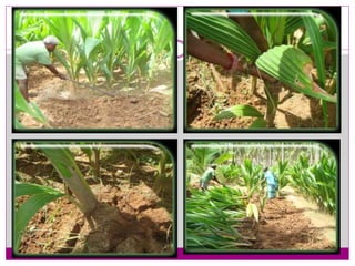 The document outlines best practices for coconut nursery management, emphasizing the importance of selecting quality mother palms for effective seed propagation. It details the ideal characteristics of mother palms, the proper timing and methods for seed nut planting, and recommendations for nursery area preparations and maintenance. The summary concludes with guidelines for selecting healthy seedlings and includes estimates of operational costs.
