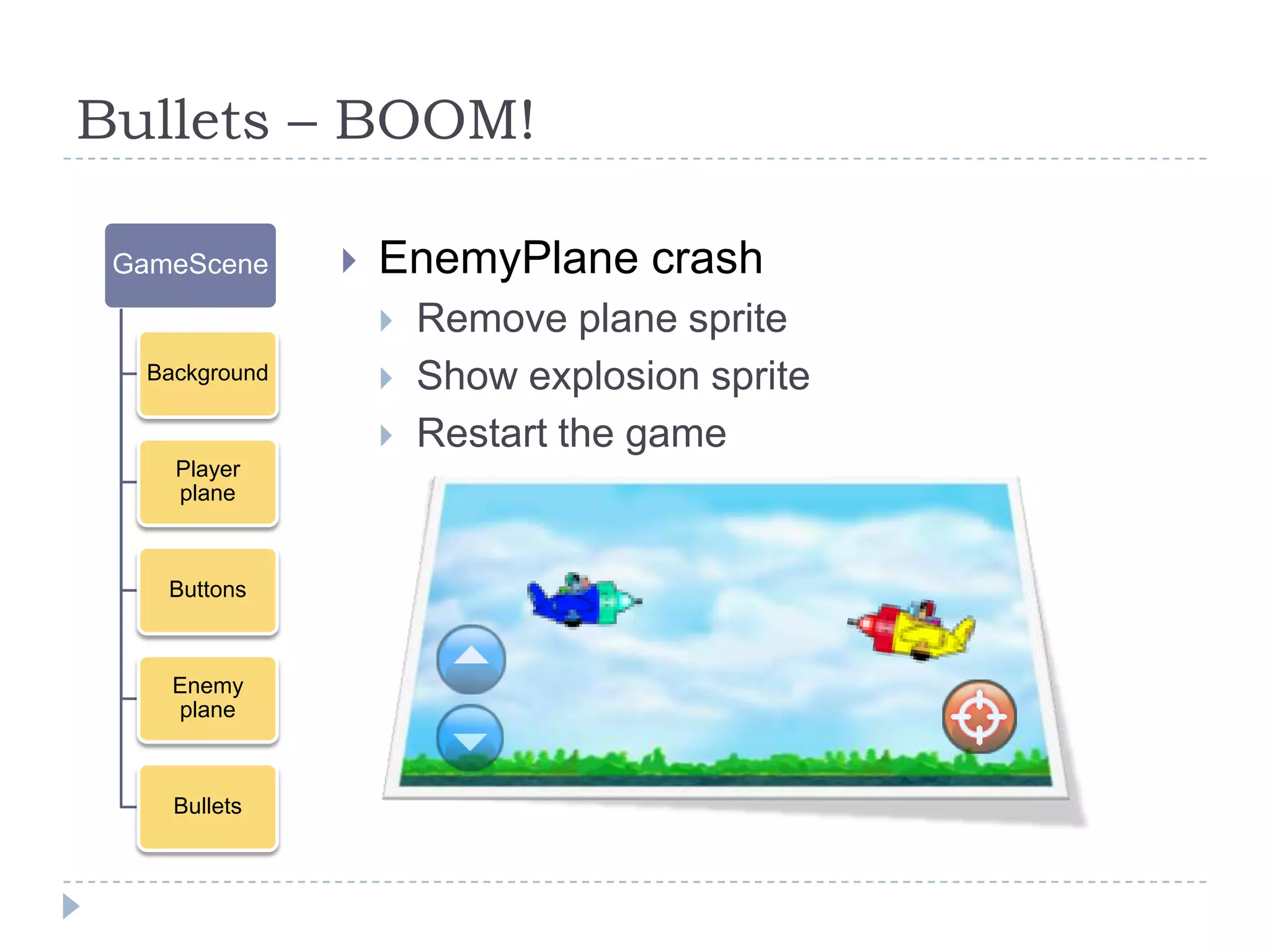 Cocos2D is a free and open source framework for building 2D games on iOS and Mac OS X. Games can be created in Cocos2D in 30 minutes or less using nodes, sprites, actions and physics engines. Nodes form a parent-child hierarchy and sprites are subclasses of nodes that display images. Actions such as move, rotate and scale are used to animate nodes and sprites over time. Common game elements like the player plane, enemy planes, bullets and explosions can be created as nodes and sprites with actions to fly, shoot and explode. Touch handling and particle effects are also supported in Cocos2D for creating interactive 2D games quickly.