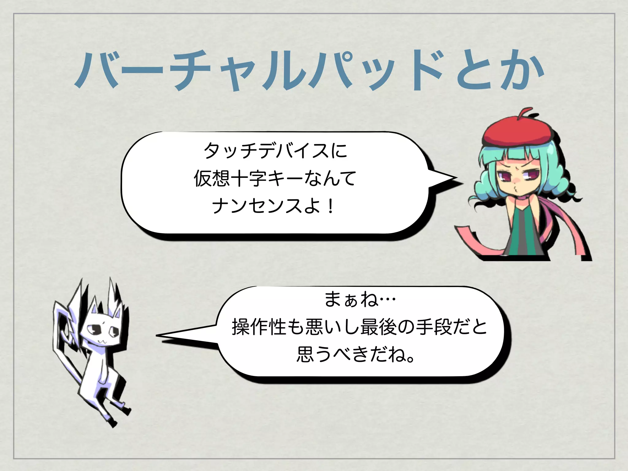 This document contains code snippets and documentation related to cocos2d game development. It includes code for scene management with layers, touch input handling, scrolling layers, menus, font rendering, scene transitions, character control, and support for the iCade game controller through delegation.