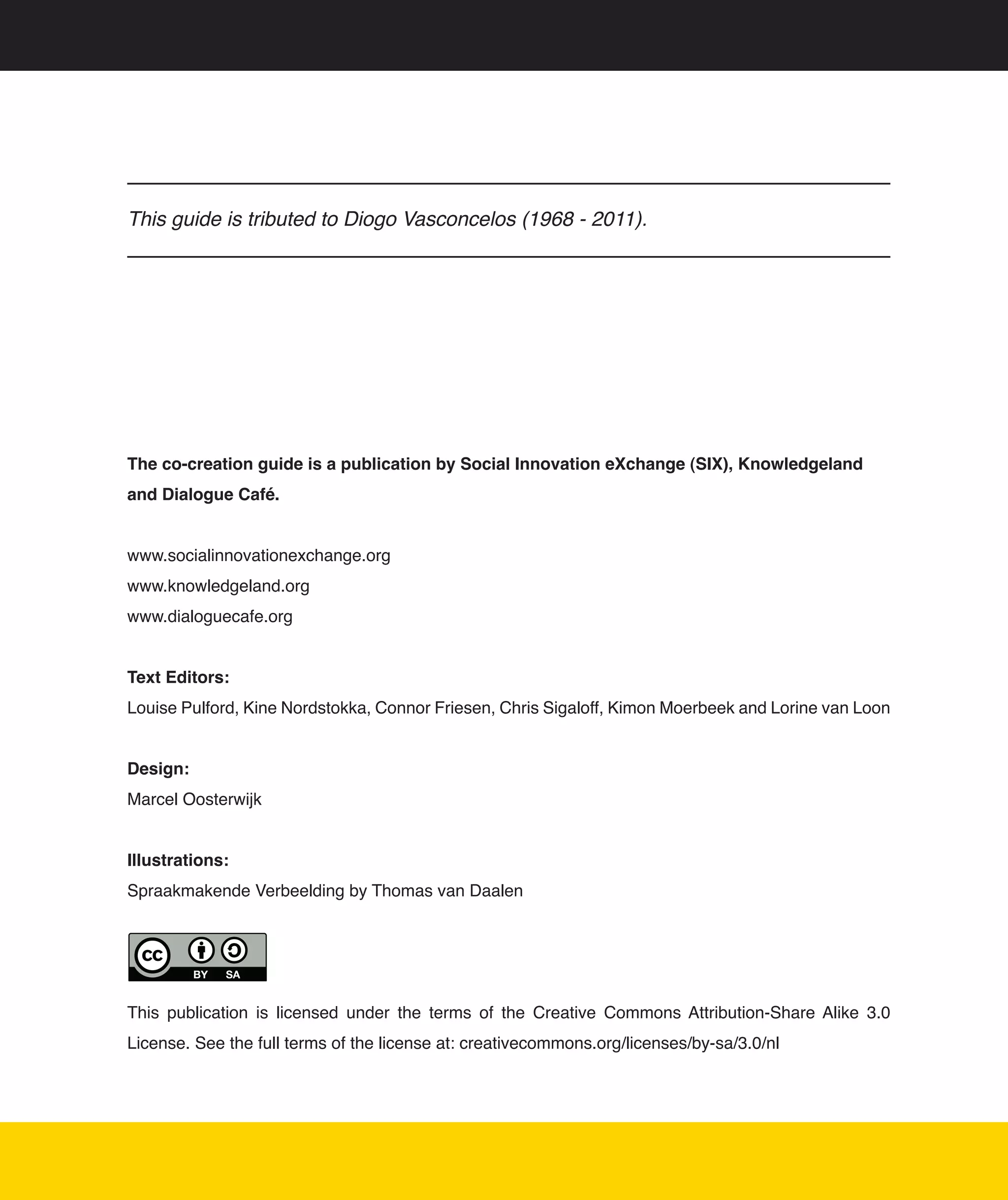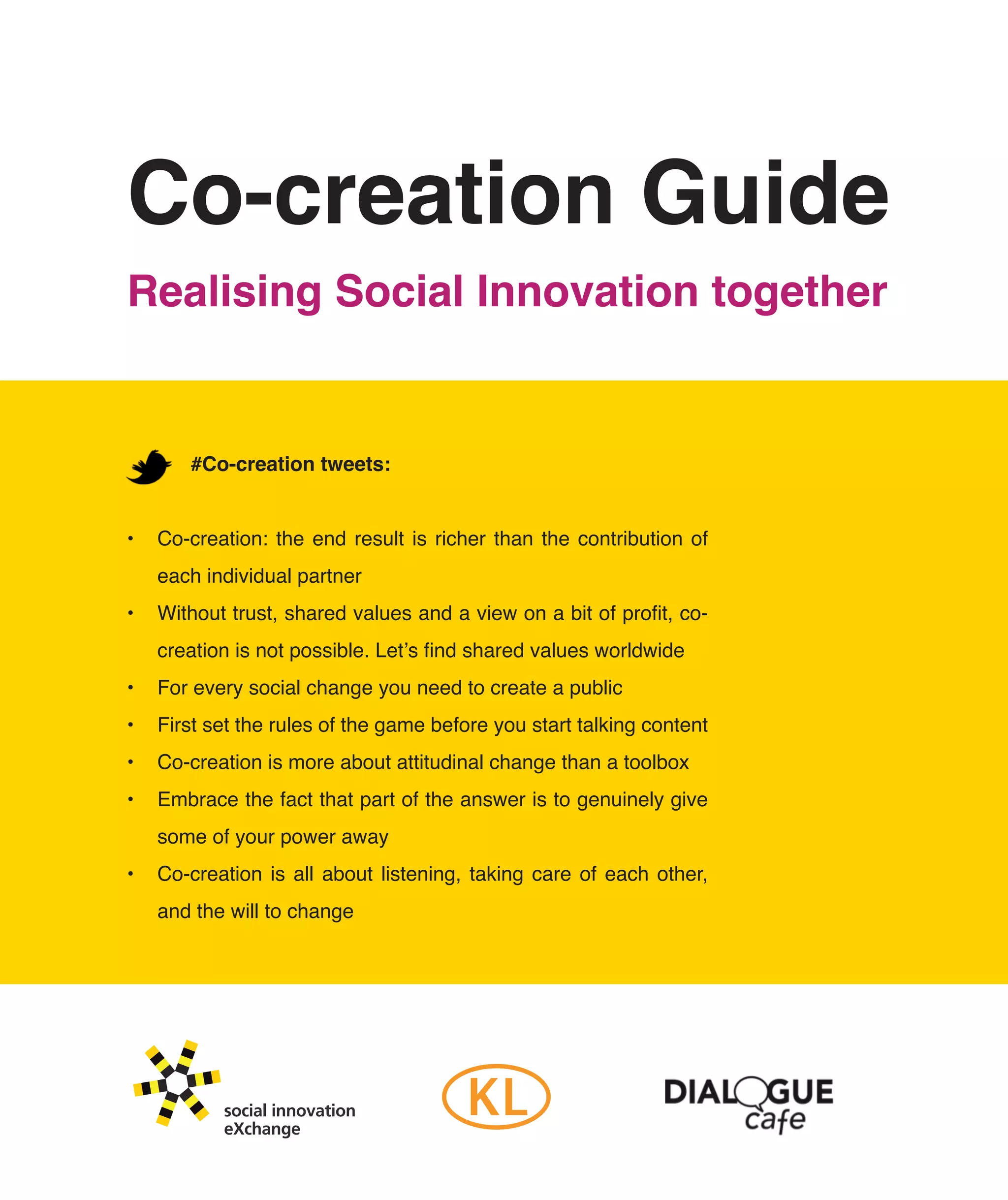 The co-creation guide promotes collaborative social innovation, emphasizing the importance of trust, shared values, and engagement from all stakeholders. It highlights the need for attitudinal change over strict methodologies in order to effectively address social challenges through participatory approaches. The document outlines key principles and methodologies for successful co-creation in various sectors, aiming to inspire further thinking and debate around this crucial topic.