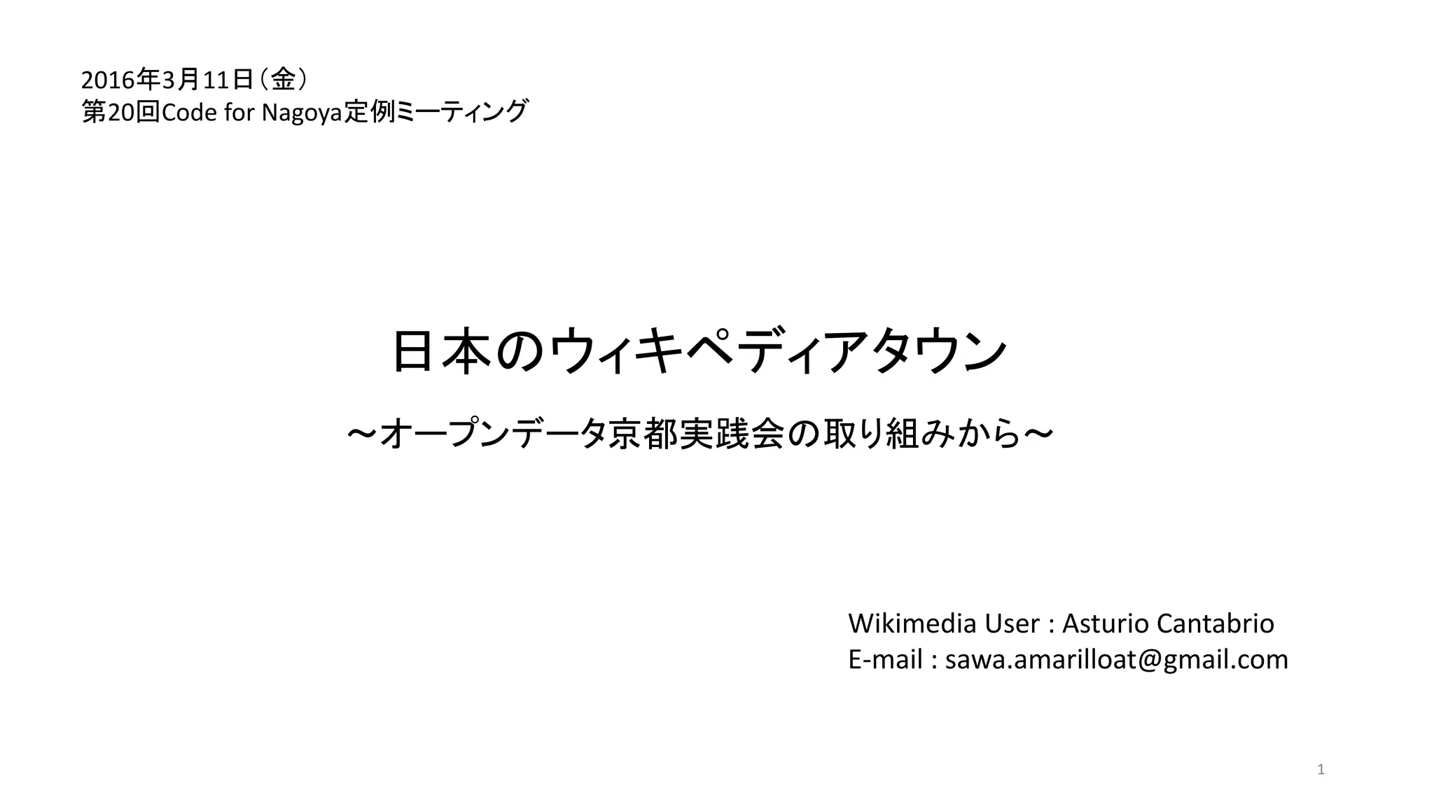 日本のウィキペディアタウン ~オープンデータ京都実践会の取り組みから~ Wikimedia User :