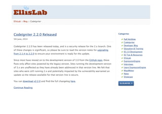 Pull request: hVps://github.com/EllisLab/CodeIgniter/pull/2689 • 変更されたコード : hVps://github.com/EllisLab/CodeIgniter/commit/9c5c490bdc61ebd27593577480ec484f0b0f6367