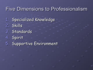 This document outlines 5 dimensions of professionalism: