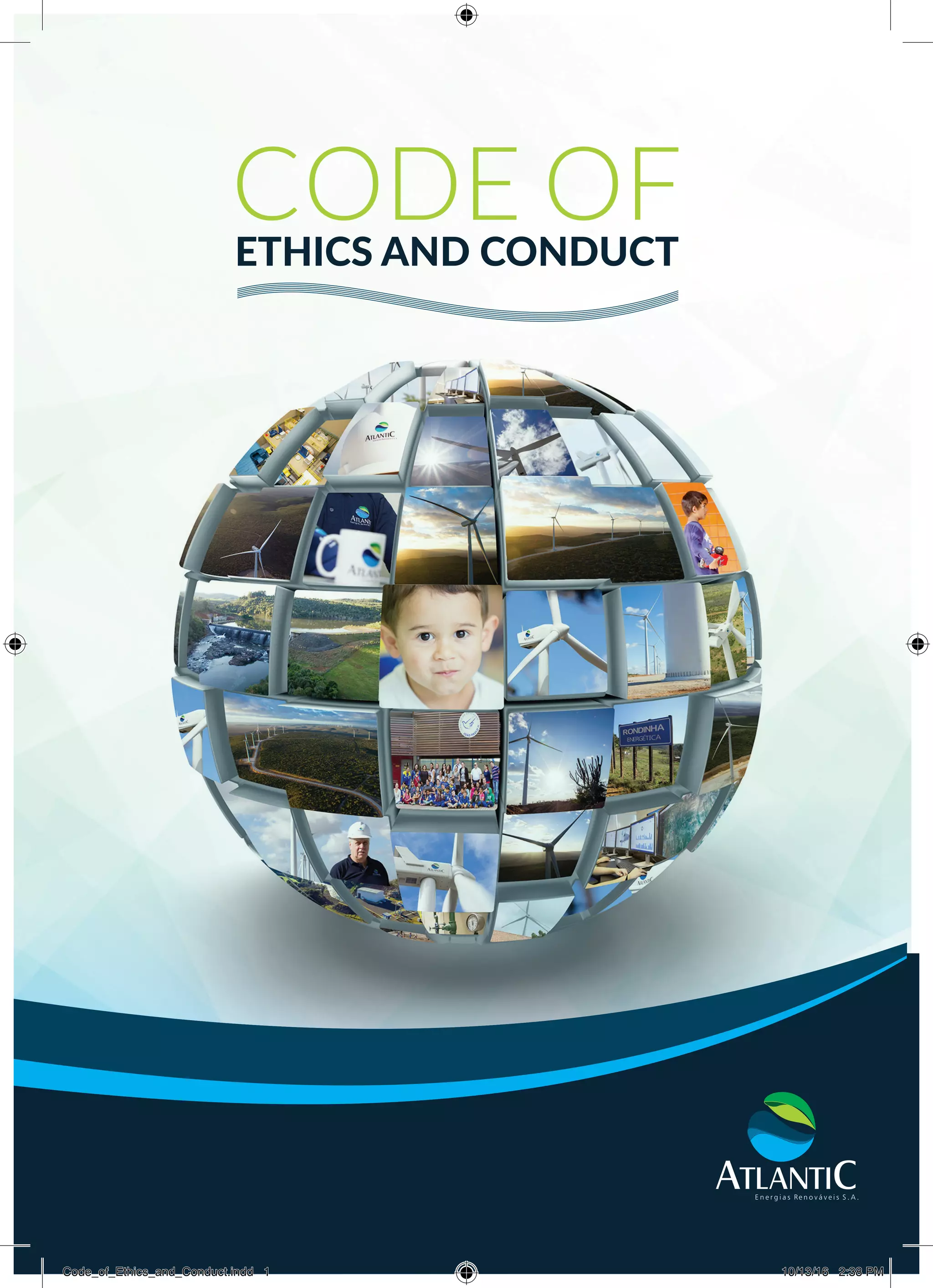 This document outlines Atlantic's Code of Ethics and Conduct. It discusses the company's mission, vision, and values. It establishes guidelines for relationships with collaborators, clients, communities, suppliers, and other stakeholders. It addresses issues like non-discrimination, harassment, use of company assets, confidentiality, and business integrity. The code aims to ensure all of Atlantic's activities are conducted ethically and with transparency.