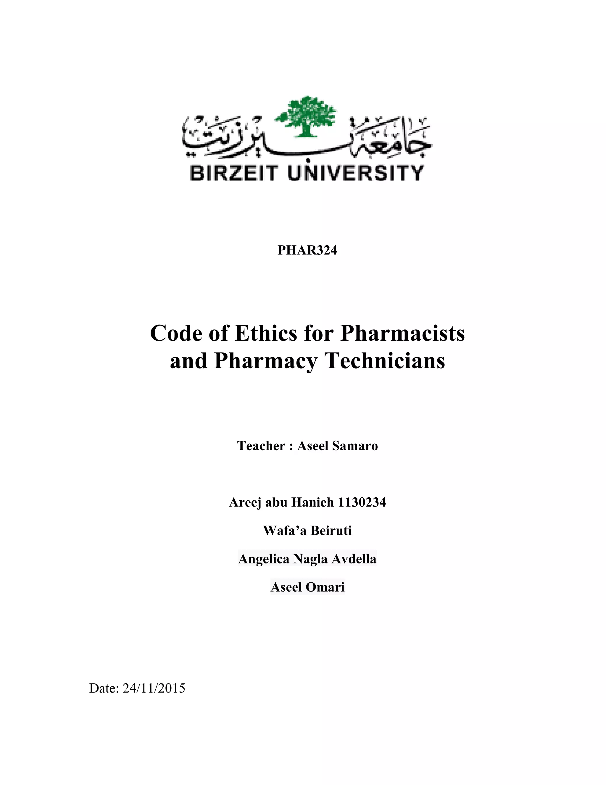 This document outlines the code of ethics for pharmacists and pharmacy technicians. It discusses seven core principles that guide the profession: (1) make patient care the top priority, (2) use professional judgement in the patient and public's interest, (3) show respect for others, (4) encourage patient participation, (5) develop professional knowledge, (6) be honest and trustworthy, and (7) take responsibility for work practices. Each principle is then further explained and examples are given of its application to ensure patient safety, public trust, and high ethical standards within the profession.