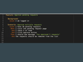 This document discusses various techniques for maintaining code quality, including pair programming, test-driven development, code reviews, and self-documenting code. It notes that pair programming involves two developers sharing one monitor, keyboard, and mouse to collaboratively write code. Benefits include higher quality code, knowledge sharing, and a teaching tool. Code reviews search for bugs, design flaws, nonconformance with requirements or style guides. Comments should explain why code is written a certain way rather than describing how.