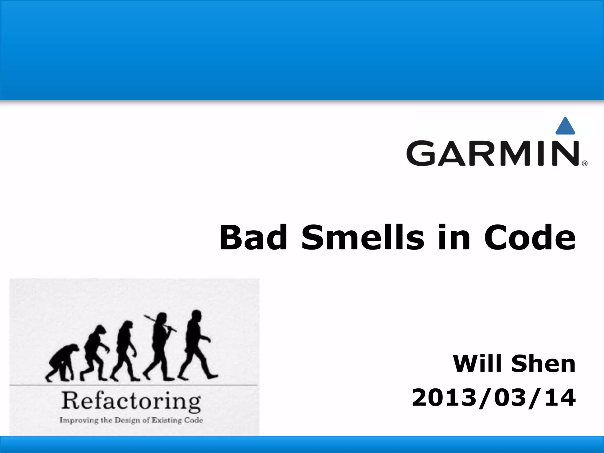 This document discusses bad smells in code that indicate refactoring may be needed. It defines refactoring as restructuring code without changing its external behavior to improve design, readability, and maintainability. Common bad smells include duplicated code, long or complex methods and classes, unused variables, primitive data types when objects could be used, and code that depends too much on other classes rather than being self-contained. The document provides examples of refactoring techniques to address each smell, such as extracting methods, replacing conditionals with polymorphism, and removing unnecessary dependencies between classes.