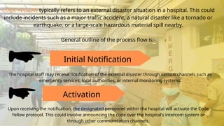 extent of the external disaster and its potential impact on the hospital. They will coordinate with