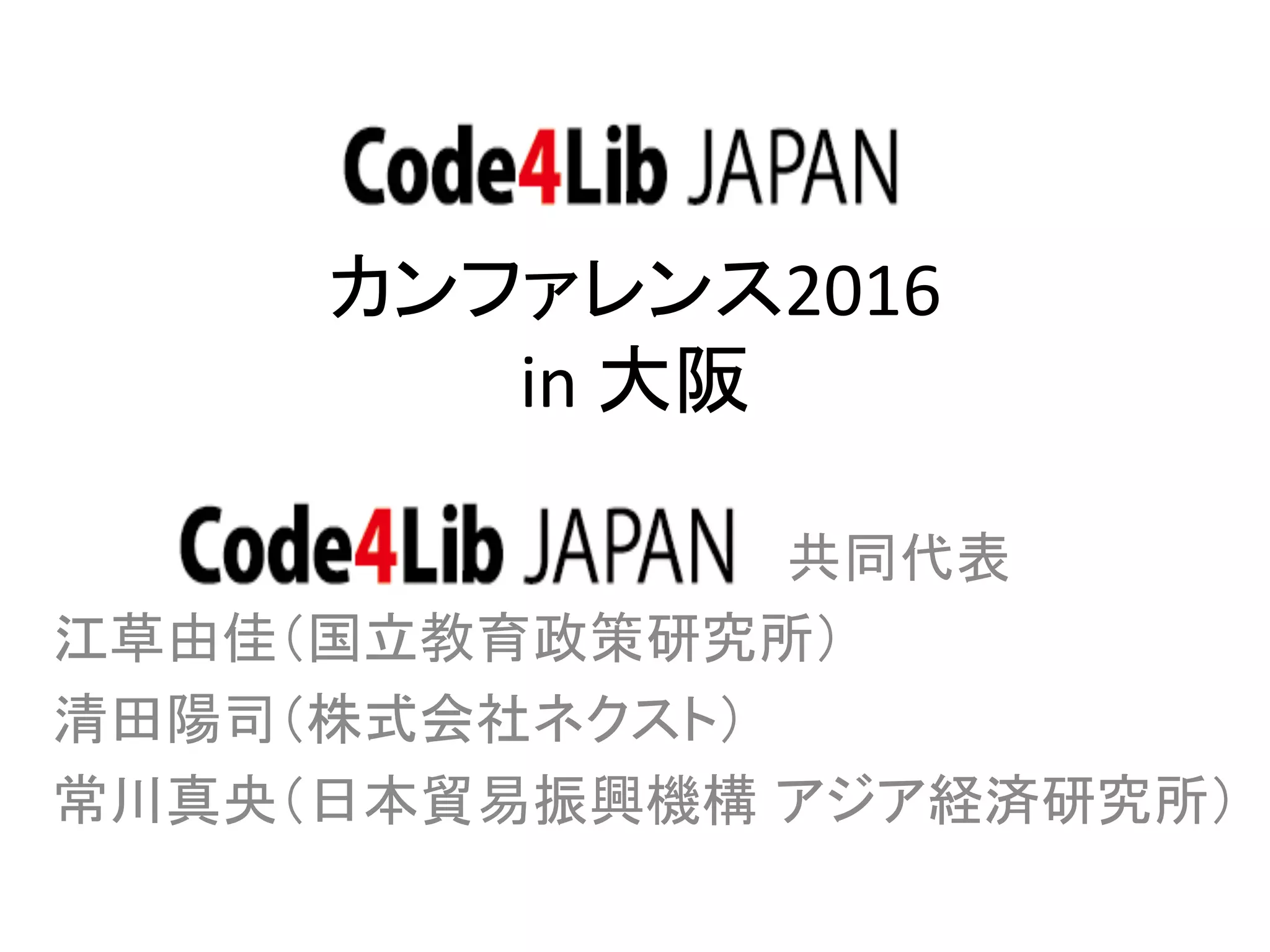 Code4Lib JAPANカンファレンス2016 in 大阪