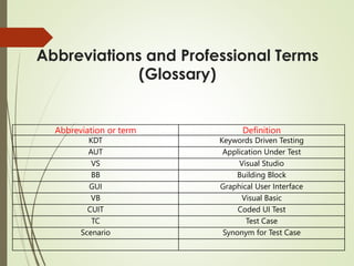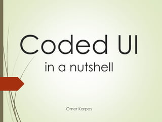1. Coded UI is a Microsoft framework that allows developers to automate testing of user interfaces across different technologies like Windows Forms, HTML, and WPF.