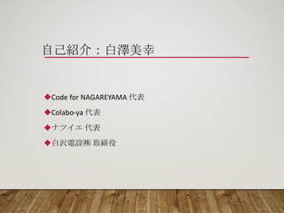 20170311code for kohoku 報告会 code for NAGAREYAMA 代表 白澤美幸さんの発表資料
