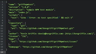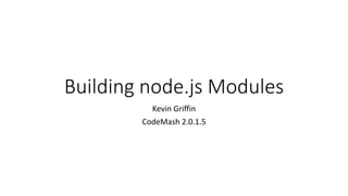 Kevin Griffin presents on building node.js modules. He discusses what modules are and why they are useful. There are three types of modules: those installed via a package manager like npm, files imported with require, and folders imported with require. The presentation demonstrates how to set up a user account on npmjs.org and publish a module to npm.
