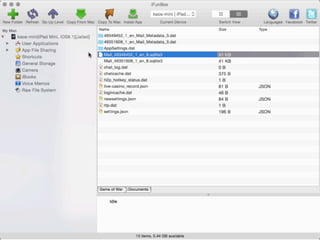 The document is a presentation by Seth Law on practical attack and defense strategies for iOS applications, highlighting tools, application anatomy, data storage, network communications, client-side injection, and privacy concerns. It emphasizes the risks associated with mobile app security, such as insufficient transport layer protection and the importance of encryption and secure data handling. The presentation further discusses defenses against various attacks and concludes with a message stressing the challenges of security in application development.