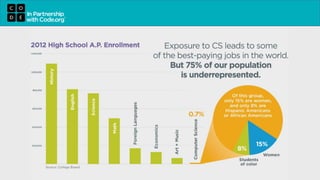 The document discusses the current status and educational initiatives in computer science for high school students, highlighting a decline in computing majors and the need for increased teacher training. It outlines the Texas Computer Science Task Force's efforts to build a robust computer science pipeline and the curriculum options available for students. Additionally, it emphasizes the significance of computer science education in fostering problem-solving skills and preparing students for high-paying tech jobs.