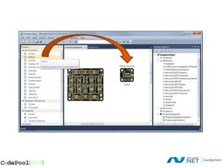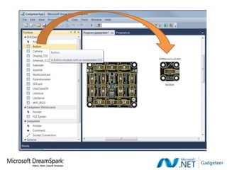 .NET Gadgeteer, developed by Microsoft Research, is an open-source platform designed to facilitate rapid prototyping of electronic devices for education and hobbyists, featuring a mainboard that connects with various modules. The platform supports easy hardware and software integration, enabling users to build devices like digital cameras in a streamlined manner using C# programming. Resources and lesson plans are available online to assist users in exploring and utilizing .NET Gadgeteer.