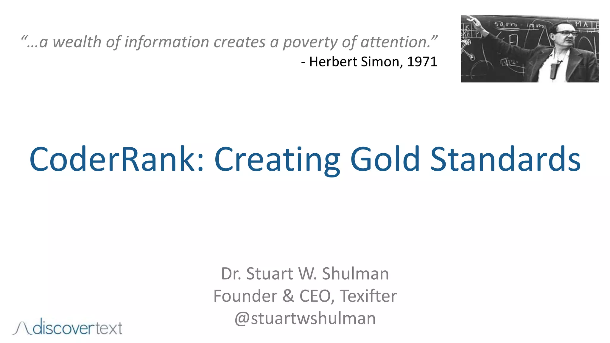 The document discusses the challenges and innovations in text classification, emphasizing the importance of validation in both human and machine models. It introduces Coderrank, a tool for enhancing machine learning in text analytics by ranking humans based on their reliability and knowledge. The integration of human coding with machine learning aims to improve accuracy and efficiency in text analysis.