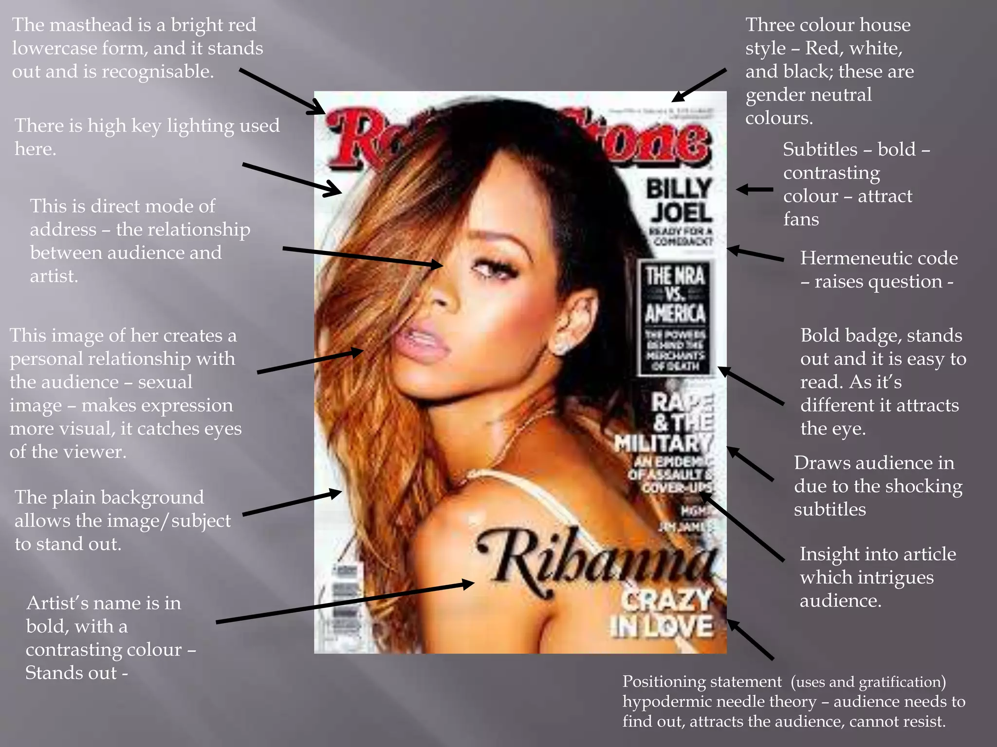 - Subtitles are in bold, contrasting colors that stand out on the background to attract readers' attention with intrigue through hermeneutic codes.