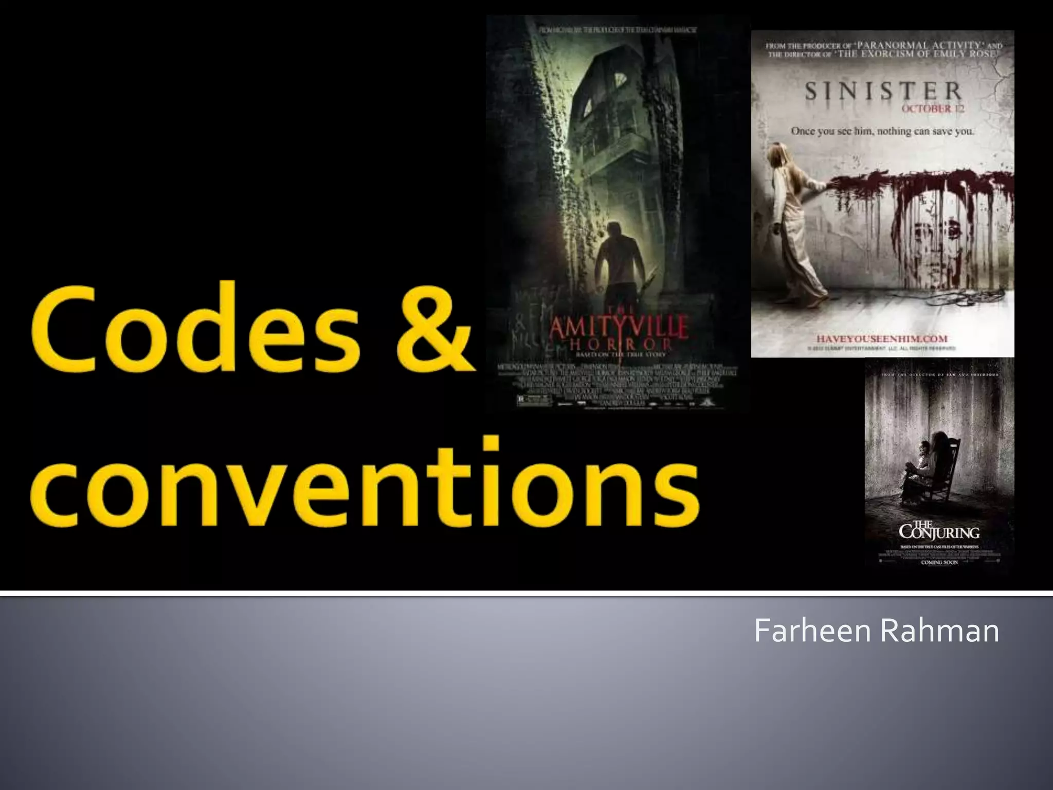 This document discusses various elements and conventions of horror films. It notes that horror films are often set in isolated locations like forests or abandoned buildings to make protagonists vulnerable. Typical music uses suspenseful tones and isolated instruments. Common sounds include wind and screams. Antagonists are usually supernatural entities while protagonists are often families or friend groups of teenagers. Gloomy or stormy weather sets an unnerving atmosphere for horror scenes.