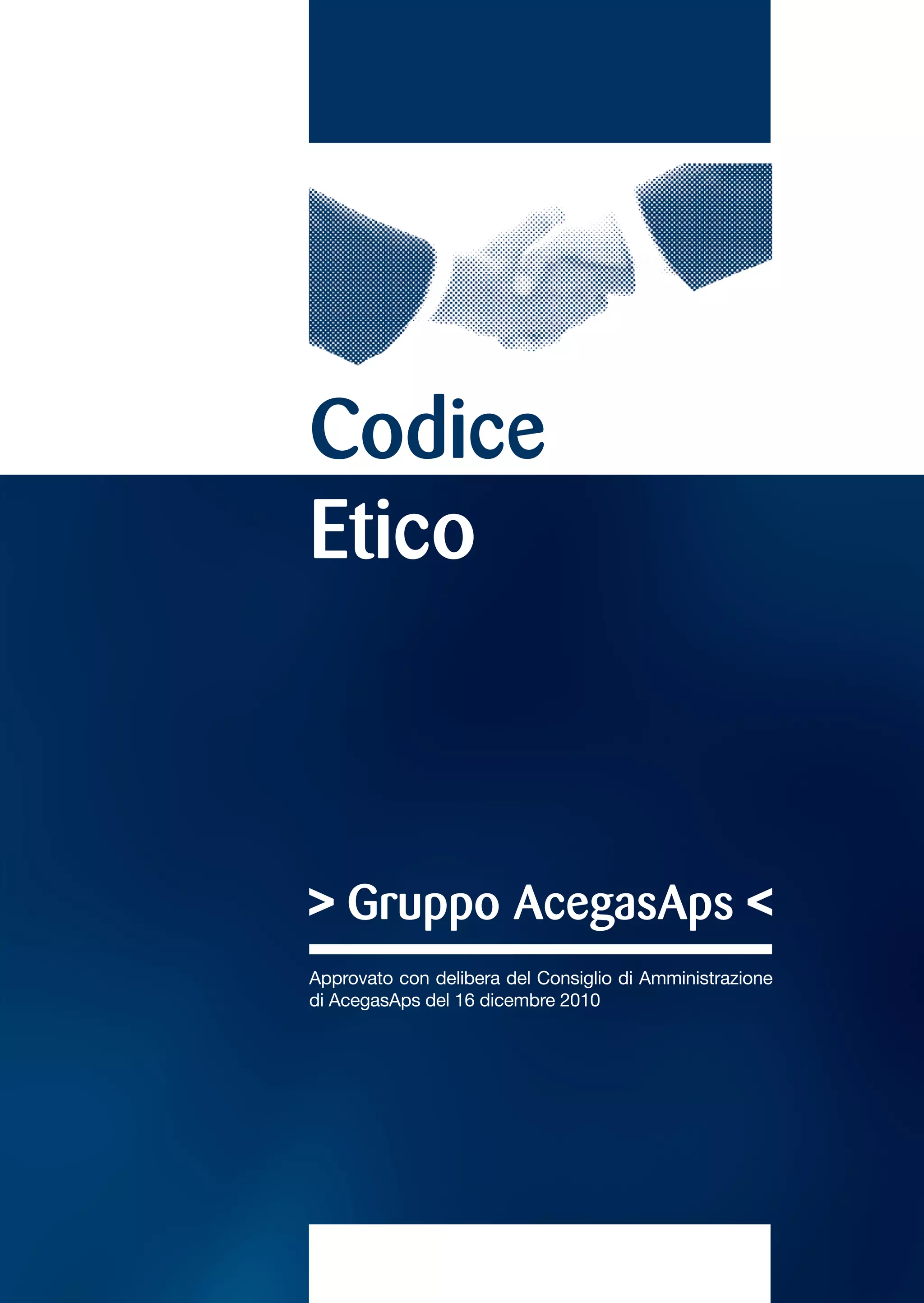 Il codice etico del gruppo AcegasAps stabilisce le regole di comportamento per amministratori, dipendenti e collaboratori, promuovendo correttezza, onestà e rispetto delle normative vigenti. Questo codice mira a mantenere relazioni di fiducia con tutti i portatori d'interesse, enfatizzando valori come la sostenibilità, la protezione della salute e la responsabilità verso la collettività. Inoltre, definisce procedure per garantire la riservatezza delle informazioni e prevenire conflitti di interesse.