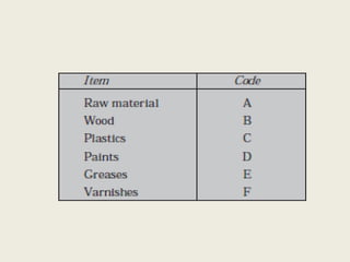 Whenlarge number of materials have been given codes, it